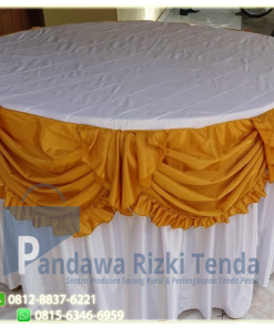 Cover meja merupakan cover menutup meja, digunakan untuk perlengkapan dekorasi pesta. Cover meja merupakan perlengkapan utama untuk acara agar meja bisa serasi dengan kursi dan dekorasi tema acara ditata lebih rapih bersih terlihat mewah dan elegant.