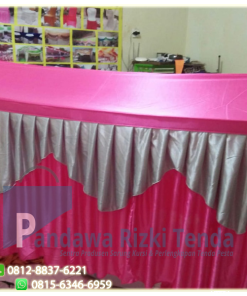 Jual cover meja rempel poni kotak – Kami menyediakan berbagai perlengkapan dan aksesoris tenda pesta yang berkualitas, didesain dengan bentuk yang unik dan bahan kain berkualitas, anda bisa mendapatkan harga cover meja yang murah hanya di Pandawa Rizki Tenda.